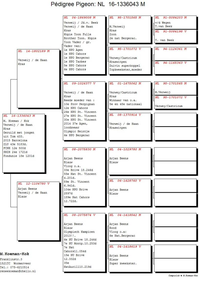 Koppel 1 : M-16-1386043 x V-24-8323490 Verweij/de Haan x Nico Volkens