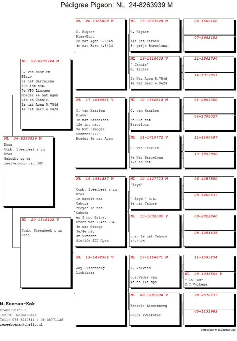 Koppel 4 : M-24-8263939 x V-19-1565218 Koos Steenbeek/ Comb. J Hommes&Znn